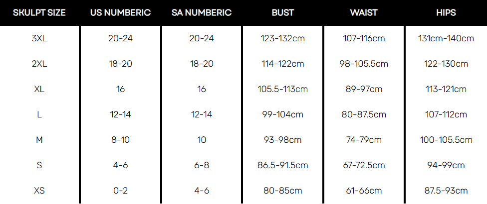 | Clothing Size | XS, S, M, L, XL |